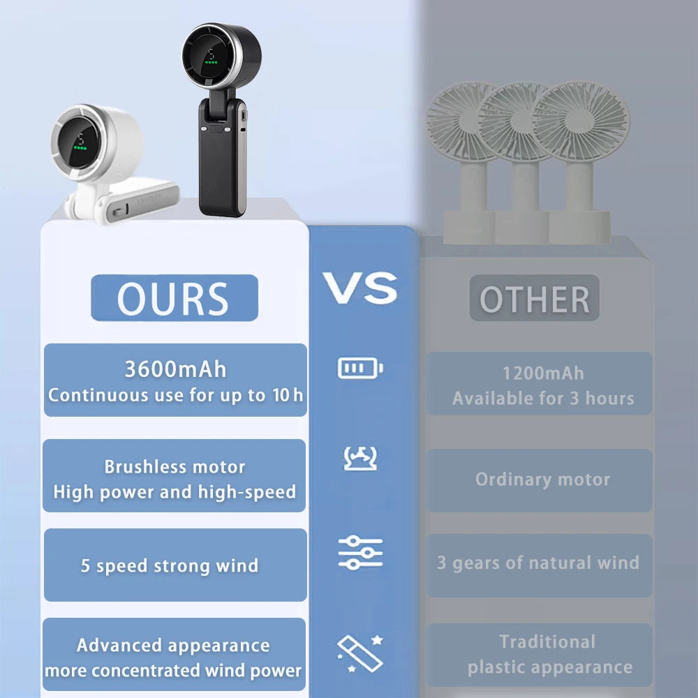 🔋 Depending on the speed setting, the fan lasts 2 to 12 hours on a full charge